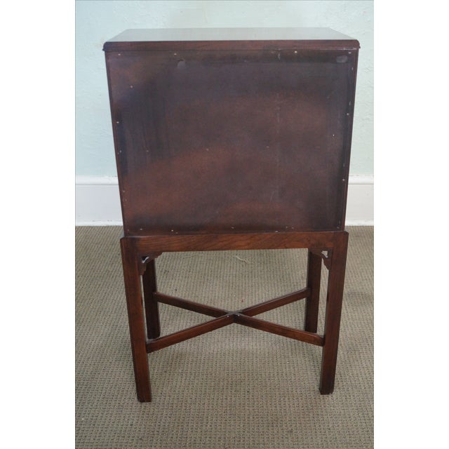 “Superior Furniture” miniature mah. 3 drawer chest; Boardman and Wells 1/2 pillar wooden works weight driven clock, Ethan Allen brass side tables; mah. roll-top desk; mah. dressing ... Access Content