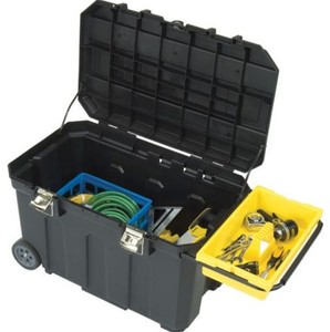 Screwfix - Water-resistant tool chest with one-touch latch for easy opening and 3-position tray for small parts. Telescopic handle and large wheels for manoeuvrability. Ideal for power tools ... View Video